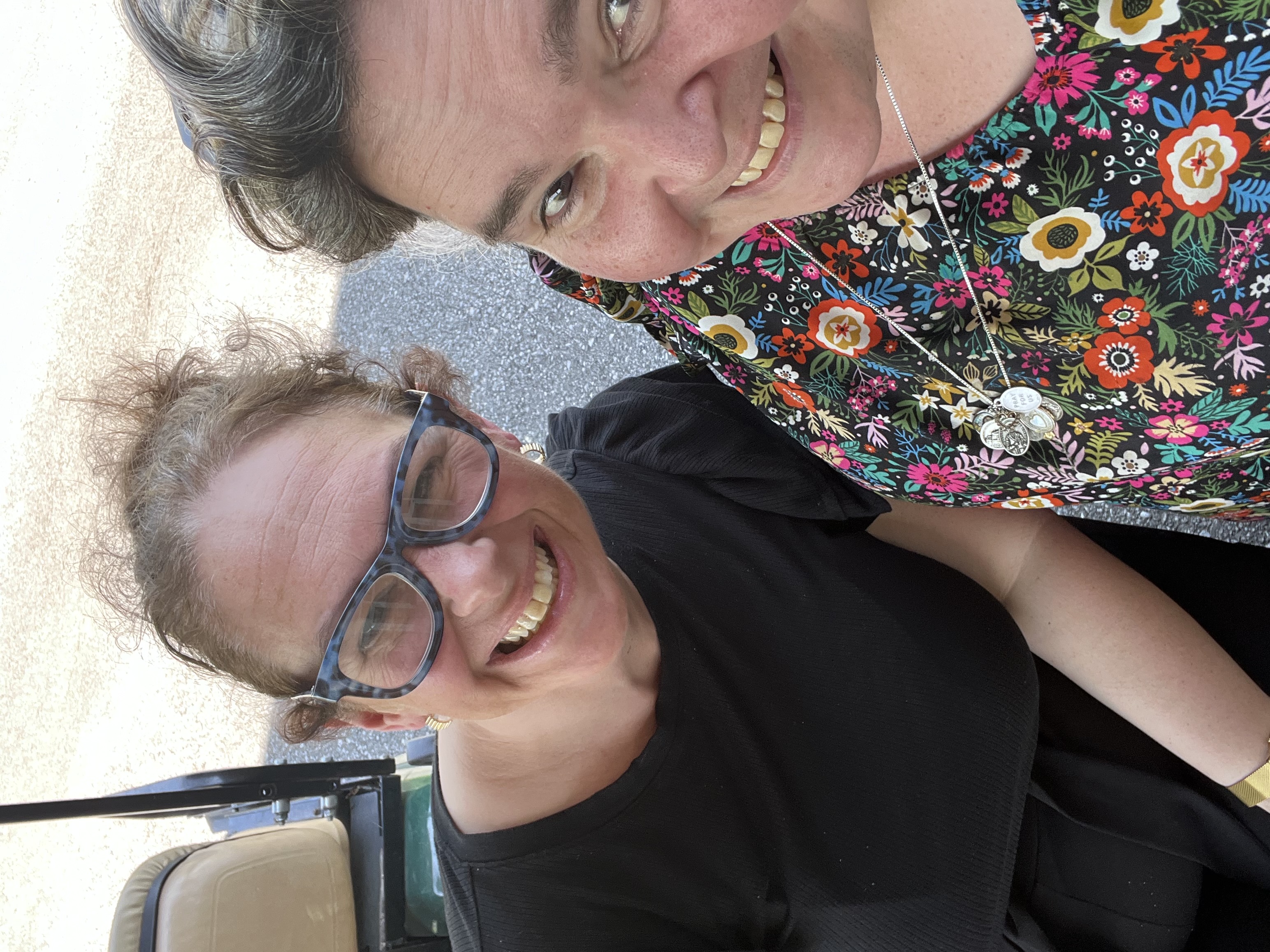 Informal smiles from Julie Baaki, executive director of the North American martyrs shrine, and KJL, who serves on the board of directors there.