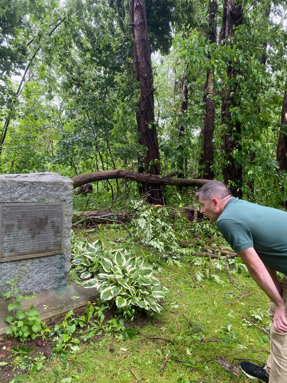 Andrew Doran inspects the monument marking the Oneida Carry outside Rome, New York -- one of the most strategically important stretches of land in our history, the battle for whose control was essential to the American Revolution.