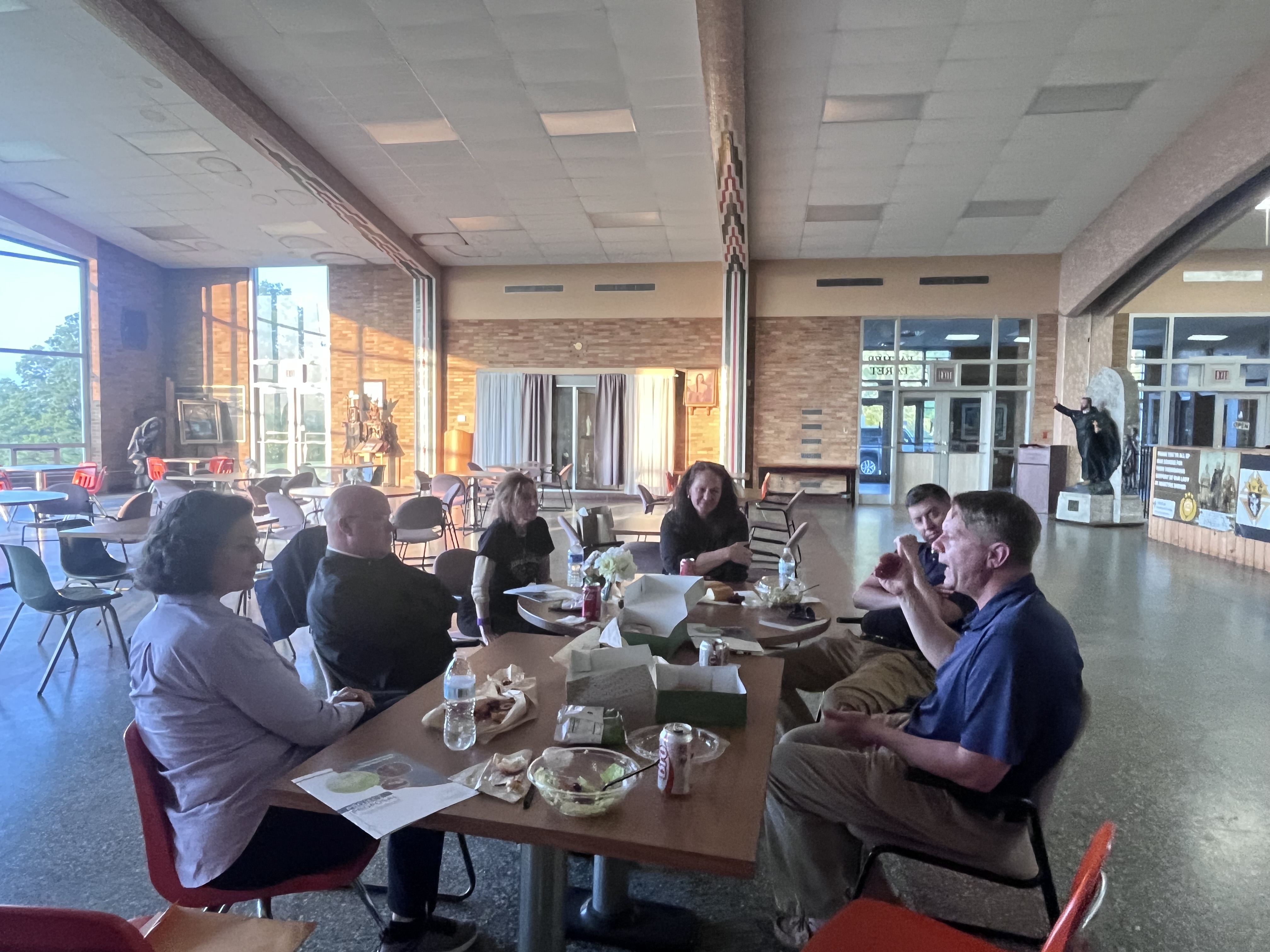 Mary Eberstadt, Andrew Doran, and Kathryn Jean Lopez meeting with leadership of the national shrine of the North American Martyrs in Auriesville, New York in their visitors’ center. Three of the Jesuit missionaries — including Isaac Jogues — were murdered on these grounds. “The Lily of the Mohawks,” St. Kateri Tekakwitha was also born there. The shrine opened in 1885 and is currently maintained by the nonprofit Shrine of Our Lady of Martyrs, Inc.