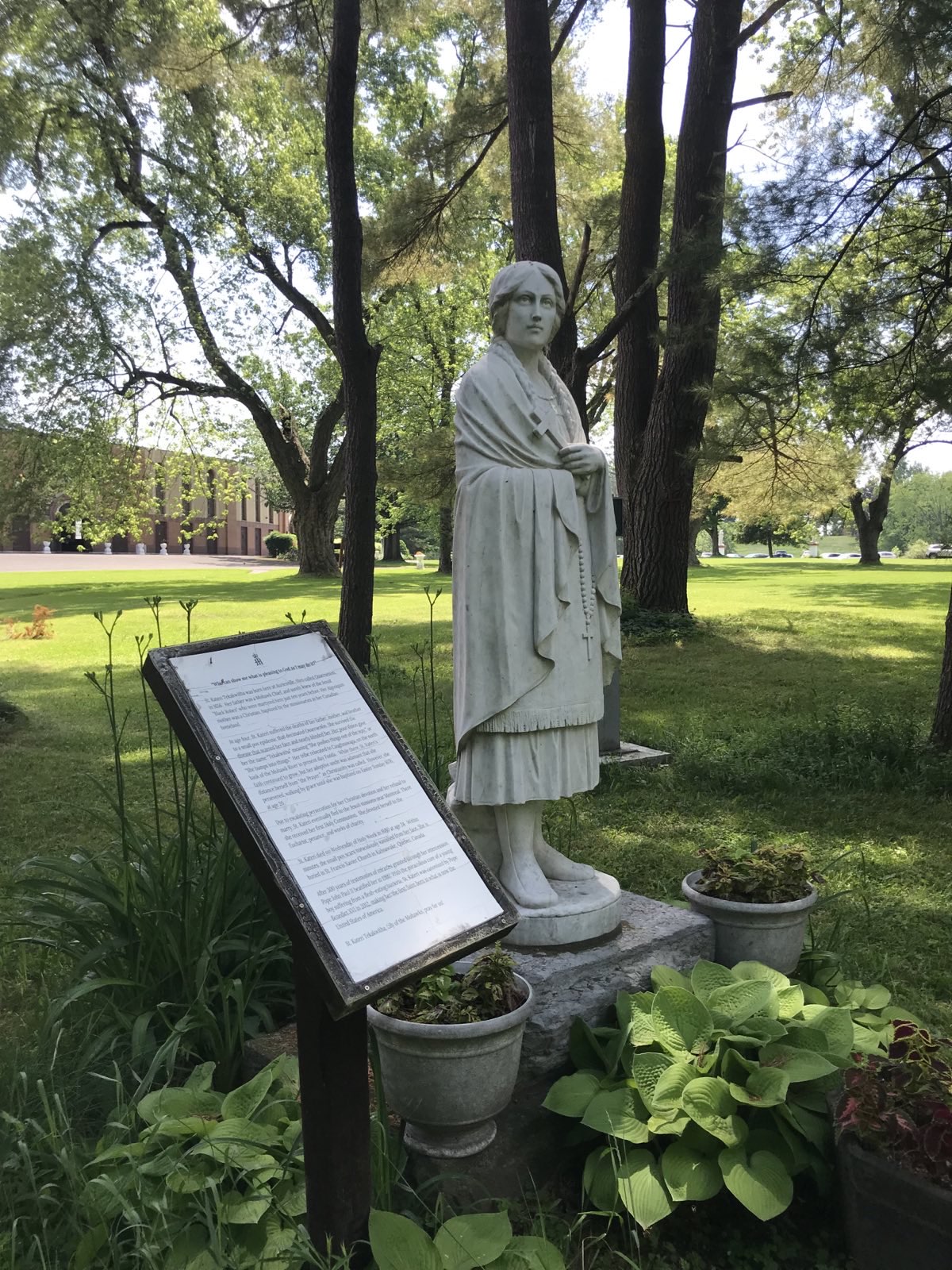 Monument to Kateri Tekakwitha, the first Native American saint, at the National Shrine of Our Lady of Martyrs, Auriesville.
