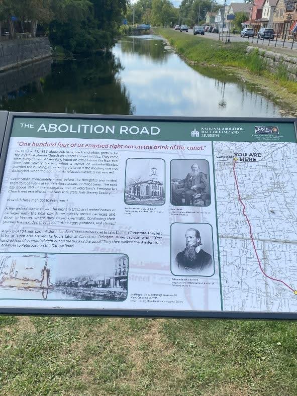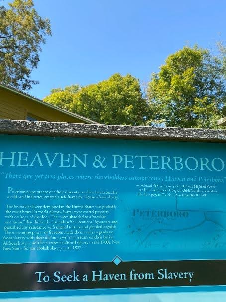 Upstate New York was ground zero of the abolitionist movement. This sign appears on the former estate of Garrett Smith, an abolitionist who gave away massive tracts of land and major financial gifts to support the anti-slavery cause. The caption reads, “There are yet two places where slaveholders cannot come, Heaven and Peterboro.”